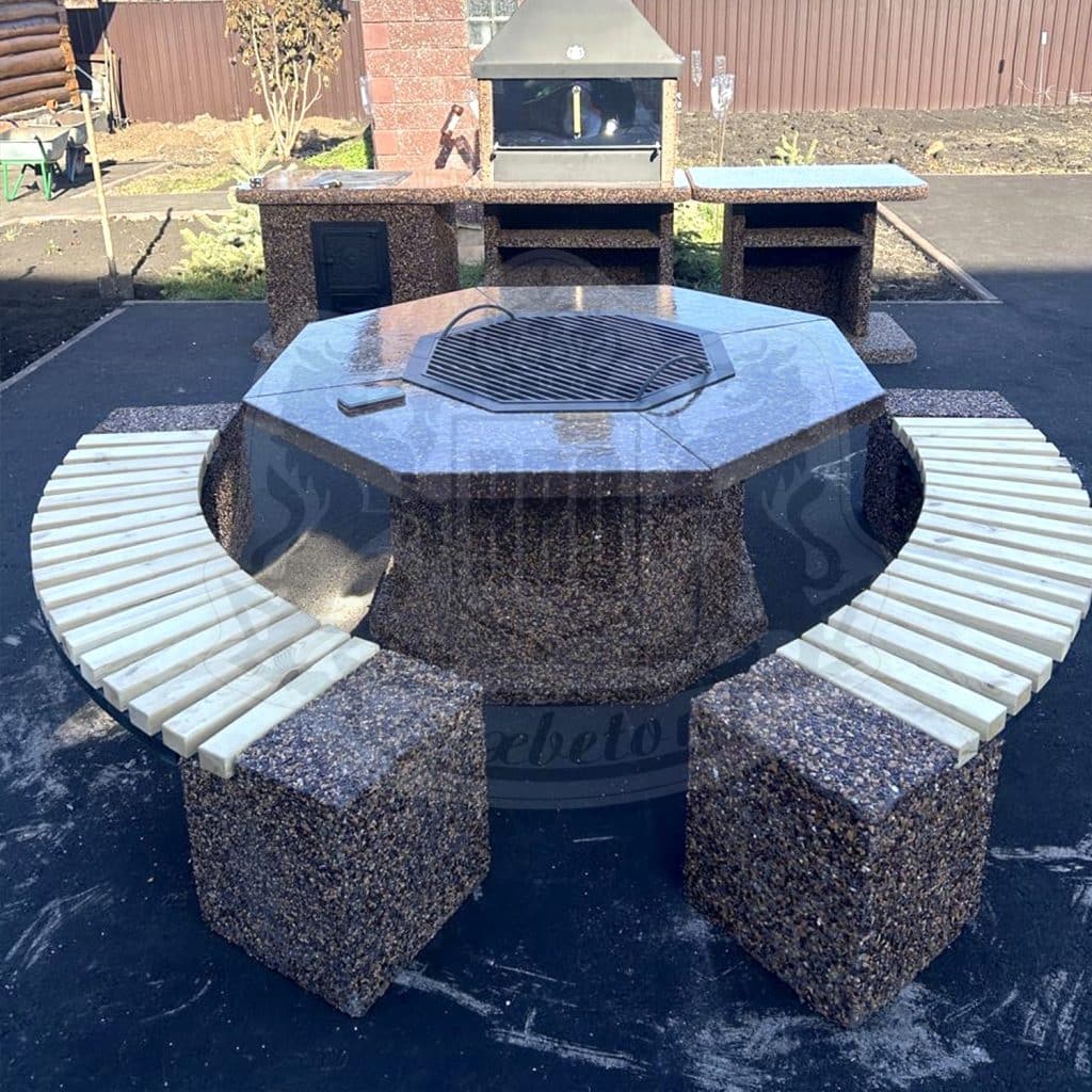 Уличная скамья из натурального камня и сосны ДхШхВ: 2000х400х460мм Вес 280кг Изделия Разнообразие цвета и фактур В составе полудрагоценные камни из Уральских гор (Яшма Златолит Змеевик Кремний Мрамор Габбро-диабаз Фельзит) Качественные изделия. Бетон прочности М600 и морозостойкости F300-350 Возможности Изготовление нестандартных дизайнерских решений Собственное производство под любой запрос Ежегодно благоустраивается более 100 000 в.м скверов и парков Более 3000 довольных клиентов по благоустройству собственных участков Подход Личный менеджер – сопровождение на всех этапах сотрудничества от разработки сметы до выполнения на объекте и даже после Гибкие индивидуальные условия сотрудничества включающие Ваш интерес Стоимость и порядок оплаты зависят от объема работ. Скидки до 30% 10 лет безупречной работы профессионалов